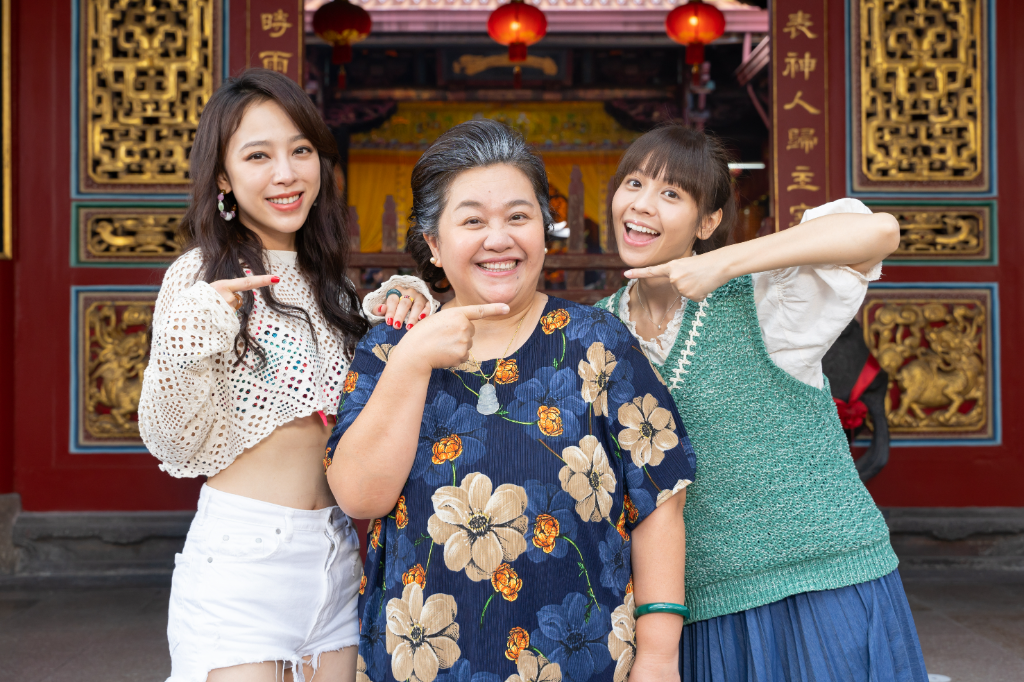 ▲ (左至右)林筳瑜、鍾欣凌、黃姵嘉凌晨開工開心收工。(圖:齊石傳播)