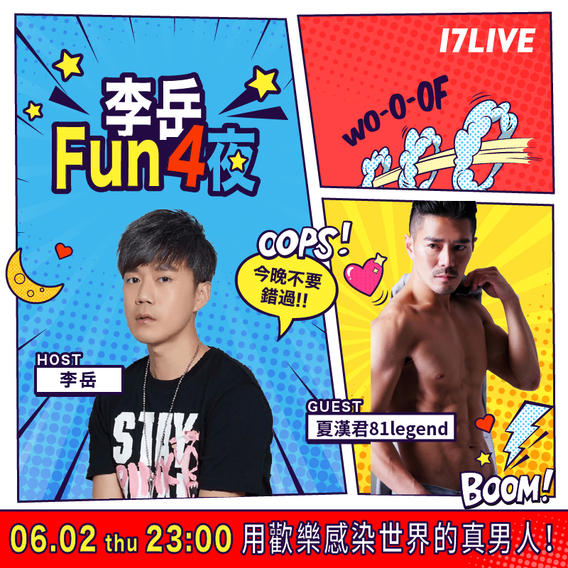 男星李岳在17LIVE人氣訪談節目《李岳Fun4夜》,疫情嚴峻下依然每週都能帶給大家一到兩場精彩訪談,日前加場訪問跨足影歌視三棲男星「小樂」吳思賢,吸引大批小樂鐵粉上線互動,本週6月2日(四)晚間11點將邀請到多年前曾合作戲劇演出、同樣於去年先後加入17LIVE挑戰跨足直播的男星夏漢君連線對談。