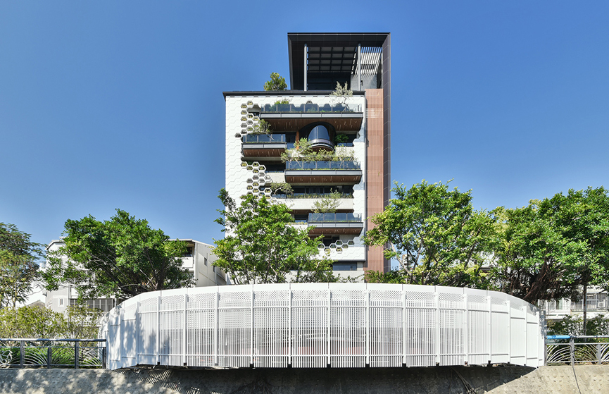 企業經營除了利益外,能否增進社會公益福祉的同時兼具永續發展這兩大課題則考驗著當今企業。晨禎營造透過《晨禎營造總部企業大樓》一一向大眾展現其貫徹企業責任之決心,本案秉持「取之社會、用之社會」為主軸替台中企業樹立標竿。總部大樓名為「丰二三」,其「丰」亦有「豐」收及象徵辛勤的「蜂」雙義。建築本體採用大量環保建材並在外觀以蜂巢六角型框架作為整體意象,體現如家人分工般的向心力,並在外觀栽種大量綠色植物來降低建築受熱也作為都市景觀的綠洲。晨禎營造尋求意涵同時兼顧實質機能的設計,也一舉從德國iF設計獎眾多競爭者中脫穎而出。