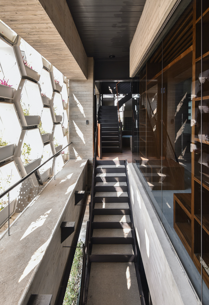 蜂巢造型複層植生牆由公司自行研發並申請專利證書,垂直蜂巢牆面,有效阻隔太陽輻射熱, 降低室內溫度。 雙面複層植栽,選用耐陰、耐旱、 耐候性強的植物,配合陽光生長適度旋轉,讓綠牆更繽紛,減少碳排放亦兼具綠意。