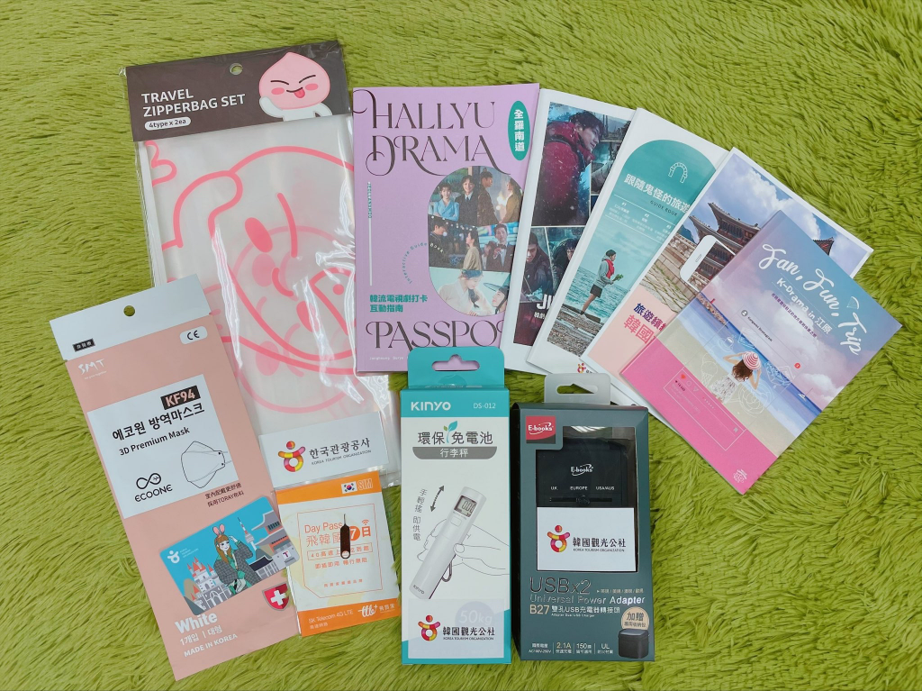 為感謝在疫情爆發兩年多後,台灣首位以觀光目的拜訪韓國的旅客黃小姐,除了最新韓流旅遊指南及KF94口罩外,韓國觀光公社台北支社也將目前作為活動抽獎紀念品之韓國七日網路吃到飽的SIM卡、韓國T-MONEY卡、KAKAO FRIENDS旅行夾鏈袋、萬能轉接頭、環保免電池行李秤等實用旅行小物一套做為謝禮贈送給黃小姐。