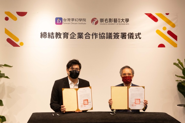 May老師、陳家逵、陳彥廷等崇右專任教授等產學界有力人士見證下完成,希望攜手打造由高中到大學再到進入職場的完整教育體系,讓有意一圓星夢的學子,可以在學習的過程一路坦途,避免多走冤枉路。
