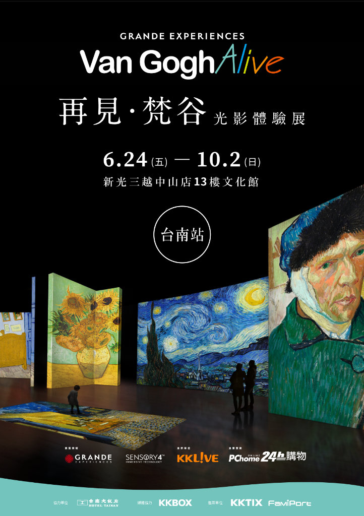 沉浸式光影體驗展近來風靡全球各地,梵谷掀開了台灣首次的沉浸式藝術篇章,興起光影體驗的展覽風潮,隨後迎來印象派莫內、克林姆、文藝復興等知名藝術家,透過光影科技,娓娓道來畫作中曾經的時光,置身油墨帶來的非凡色彩。《再見梵谷 - 光影體驗展》以完整的故事脈絡,帶觀眾透過〈星夜〉、〈向日葵〉、〈亞爾的臥室〉、〈麥田的群鴉〉等知名作品,踏上梵谷充滿傳奇性的人生與藝術旅程,以光影科技的動態投影呼應梵谷十年的創作生涯,從荷蘭時期到法國巴黎、亞爾的生活以及梵谷人生的終點聖雷米,勾勒梵谷不平凡的一生。而本次台南站展規格也再度升級,除了將首度展出實景〈夜晚的露天咖啡座〉,讓觀眾置身法國街道上的夏夜,並以〈向日葵〉為靈感以鏡像反射打造的「向日葵鏡屋」藝術裝置,投影區更將加入嶄新的呈現方式與材質,提升觀眾的沈浸體驗與視覺震撼,帶來與2020年截然不同的嶄新體驗。