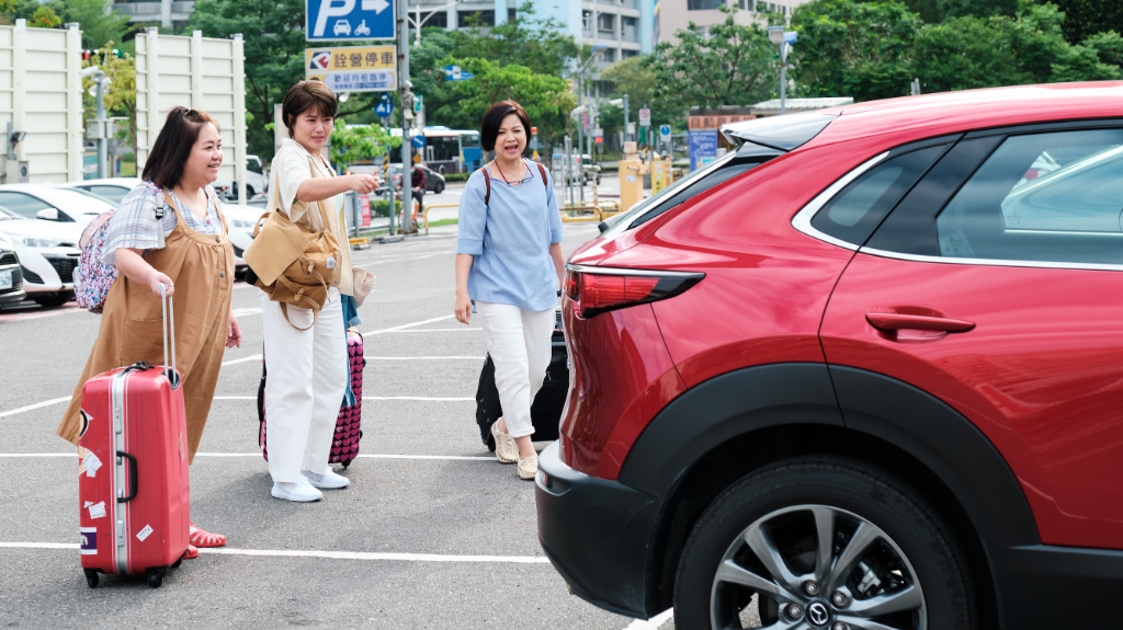 ▲ 嚴藝文(中)被製作單位交付車鑰匙卻不敢開車,楊貴媚(右)被迫成鍾欣凌(左)嚴藝文司機。(圖:桂田文化藝術基金會)