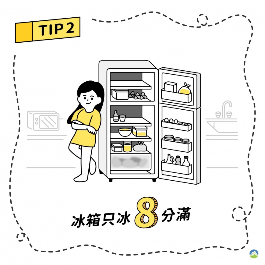 工研院綠能所經理蘇娟儀受訪時也解釋,冰箱若塞太滿,恐導致對流不順,相對來說會更加耗電,損壞率也更高,因此應該盡量留空隙來保存冷凍、冷藏品;此外,要切記檢查冰箱膠條,因為膠條用久吸力不足,也會讓冷氣外洩,一年恐多花200元電費。