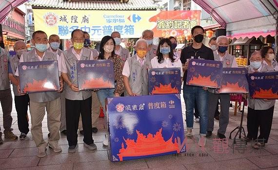(嘉義新聞)【記者郭政隆、邱嘉琪/嘉義市報導】在全省各地的中元普渡中,嘉義是現今唯一保存有「輪普」的傳統習俗,而普渡、祭祀好兄弟,總少不了要準備些豐盛的祭品,國定古蹟嘉義城隍廟今年因應疫情,授權與家樂福合作,推出中元節聯名普度箱及線上代客普度服務,讓外縣市民眾都可以輕鬆感受到百年的普度文化及城隍爺保佑。