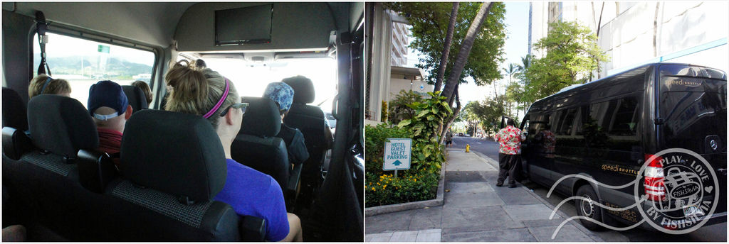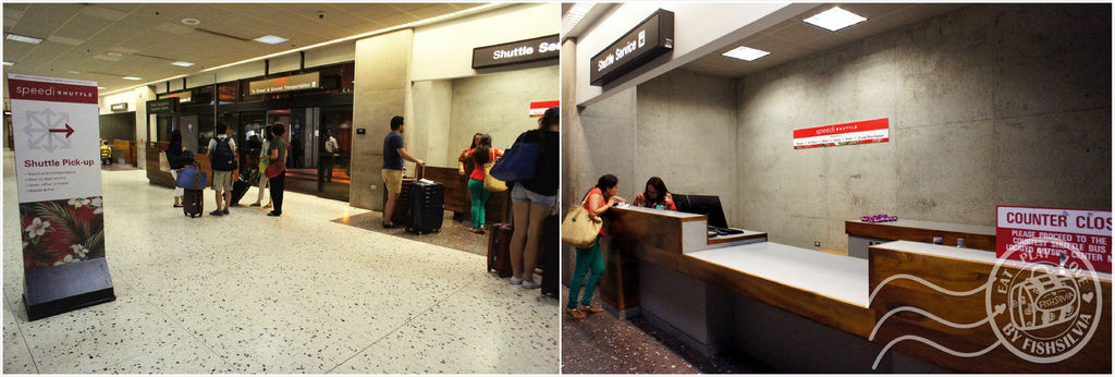 因為第一天咱們都還在市區裡閒晃,況且shoreline自家的停車費可是要美金28塊一晚呢!所以來到Oahu就先不租車了,早在還沒離開ASTON Kona by the Sea前就預約了接場接送先,行李轉盤旁邊就是報到櫃台很好找的