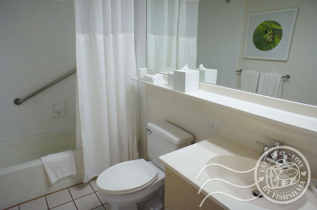原以為這種shoreline HOTEL WAIKIKI這種平價旅店的浴室就不必指望了,想不到它用純粹的白完全擄獲我的心啊!真.的.非.常.乾.淨到我一度懷疑他們有跪在地上刷地板,無可挑剔的整潔度徹底Cover掉空間小不拉嘰的缺陷啊~