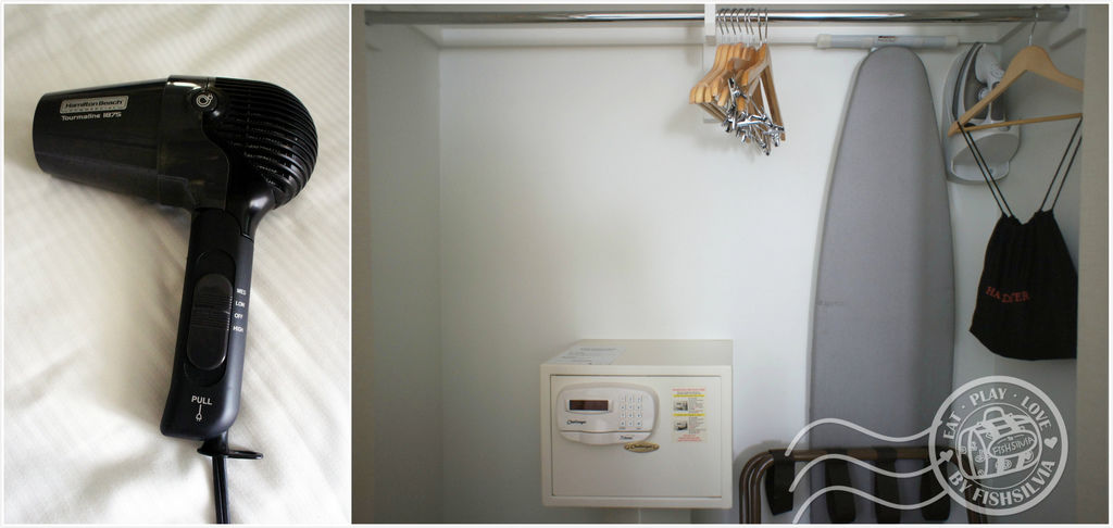 吹風機則不在浴室,而是藏在雙人床旁的壁櫥裡,話說這裡的衣櫥跟房間大小不成比例啊,大到我們兩個都可以躲進去了好離奇...