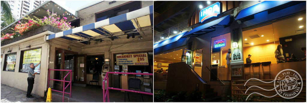 shoreline HOTEL WAIKIKI小到沒餐廳也沒附早點,但這一點都不成問題,因為飯店週邊餐廳多到吃不完啊!像是超划算美式餐廳Seaside Bar & Grill和IHOP(右圖櫃檯前有亮點!)都在步行八分鐘以內可抵的Kuhio大道上,用完餐還可以順道逛逛消耗一下熱量,真的是方圓百里都是會破財的陷阱啊!!