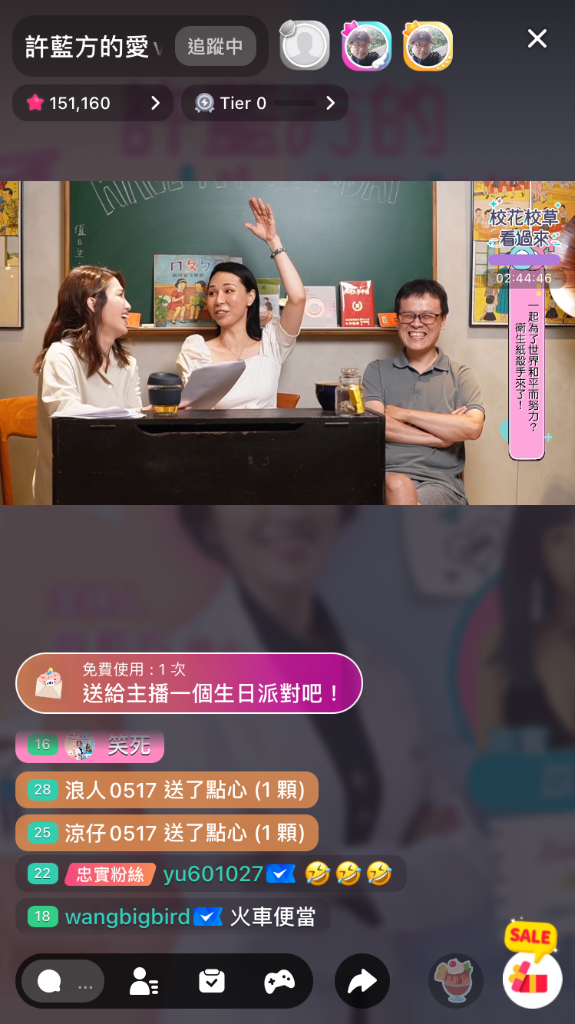 ▲ 許藍方(左起)苡若、一劍浣春秋三人對談,直播間笑聲不斷。(圖:17LIVE)