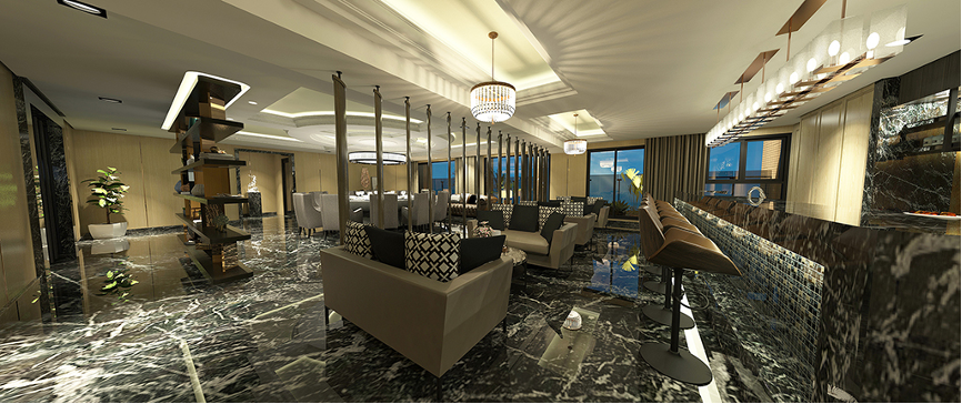 隨著室內空間俐落的線條導讀,由華麗的基礎開場,緩步進入流暢優美屋身,當中輕快、優雅的間奏引人入勝,最後再來到頂部以開放的空間與豐富的都市天際線收尾,彷若餘音繞樑的樂章,讓人醉心於空間、自然與設計的美。
