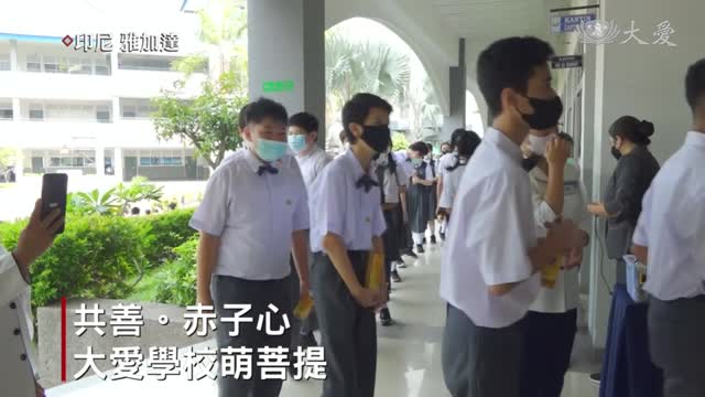印尼慈濟大愛學校,舉辦竹筒回娘家的活動。
