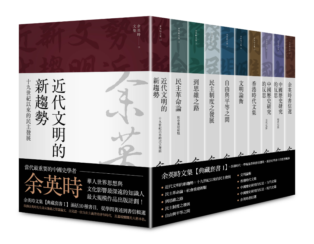 「余英時文集」今年共分兩階段出版,率先於八月推出10種:學術論著兩冊《中國歷史研究的反思》,收錄余先生尚未集結出版之單篇論文,包括不同時期發表之中英文文章,以及應邀為辛亥革命、戊戌變法、五四運動等重要歷史議題撰寫的反思或訪談;香港時代七冊收錄余先生二十多歲、居住於香港期間的著作,見證了一位自由主義者的青年時代,也是余先生一生澎湃思想的起點。書信選集呈現余先生與師長、友朋的魚雁往返,展現了他溫暖慷慨的人格本色與思想脈絡。