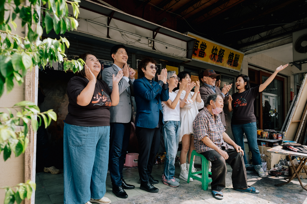 ▲ 鍾欣凌(左起)、台南市文化局局長葉澤山、台南市副市長趙卿惠、陸弈靜、陳仙梅、顏振發師傅、王童導演、楊貴媚。(圖:桂田文化藝術基金會)