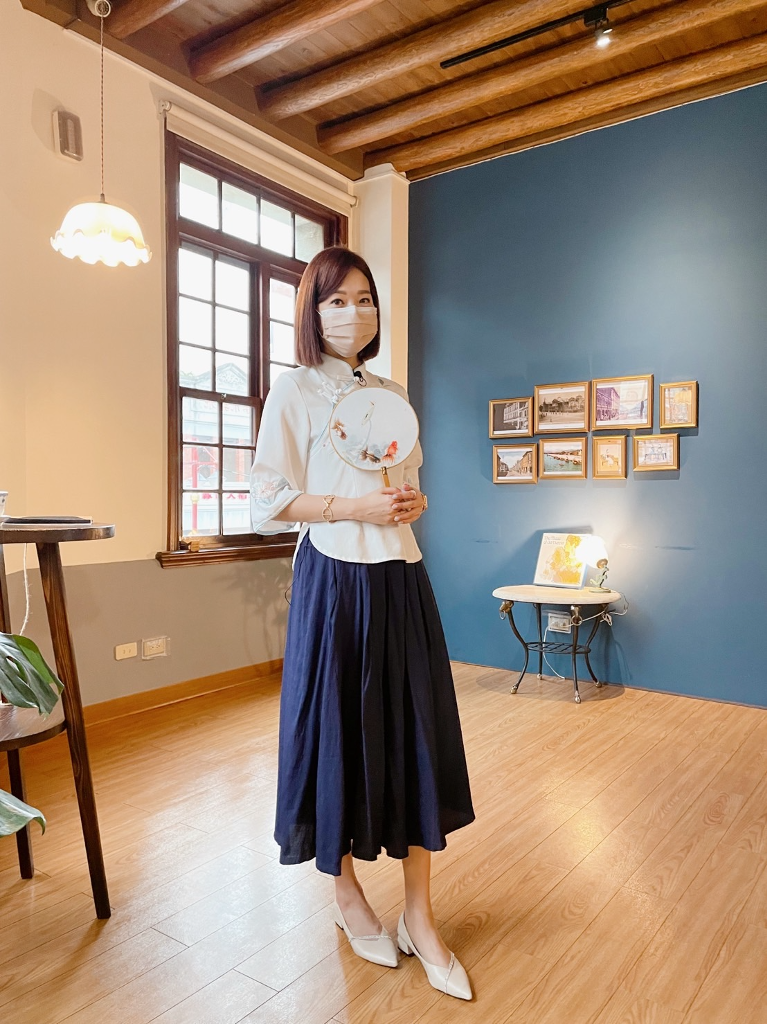 緊接著她來到了大稻埕遊客中心,大玩變裝秀,