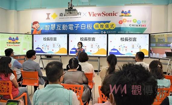 (嘉義新聞)【記者郭政隆/嘉義市報導】近年投身數位教育事務的ViewSonic公司,成效卓越,本次與積極推動數位線上學習的嘉義市府合作,ViewSonic公司並無償捐贈教學設備、數位教學平台軟體授權與協助培訓種子教師,嘉義市長黃敏惠與ViewSonic董事長朱家良8/10日出席在大業國中舉辦的「智慧互動電子白板捐贈儀式」,期望透過完整的解決方案與教師數位培訓,將嘉義市打造為推廣數位教育精緻化的指標城市。