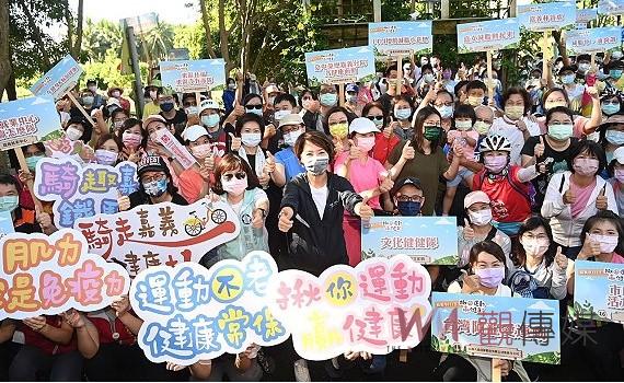 (嘉義新聞)【記者郭政隆/嘉義市報導】近二年受新冠肺炎疫情影響,民眾戶外運動有減少趨勢,對健康恐造成威脅,嘉義市政府衛生局為鼓勵市民多運動、健康飲食、保持健康體能、增強保護力,今年結合微笑單車股份有限公司辧理「騎走嘉義健康+1」系列活動,自8月13日起至9月24日每周六早上在路面寬敞、人車分道的嘉油鐵馬道各辦理一場,以主題式邀請不同族群朋友來嘉油鐵馬道騎車健走,有健康職場促進、親子均衡飲食、桃城女子、失智友善、糖尿病友、癌症病友等主題,衛生局表示,歡迎大家共同體驗戶外騎走運動的好處,增進身心健康及家庭幸福,8/13日首場以職場健康促進為主題出發,鼓勵參加衛生局辦理的增肌減脂競賽揪團運動競賽的隊伍率先響應,共有18隊職場員工及眷屬約300人報名參加。