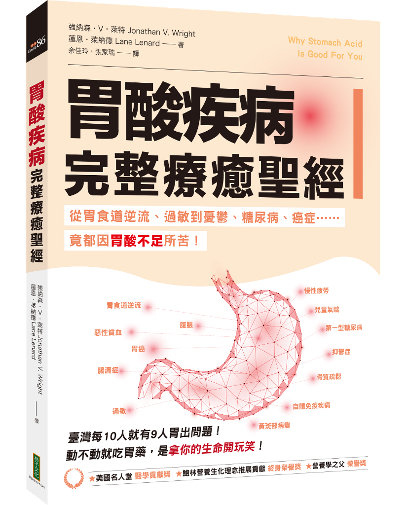 ──整理摘自柿子文化《胃酸疾病完整療癒聖經:從胃食道逆流、過敏到憂鬱、糖尿病、癌症……竟都因胃酸不足所苦!》,Jonathan V. Wright, Lane Lenard/作者