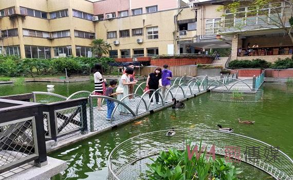 ▲嘉大合作社戶外有舒適的休憩空間,旁邊即是沁心湖,環境清幽。
