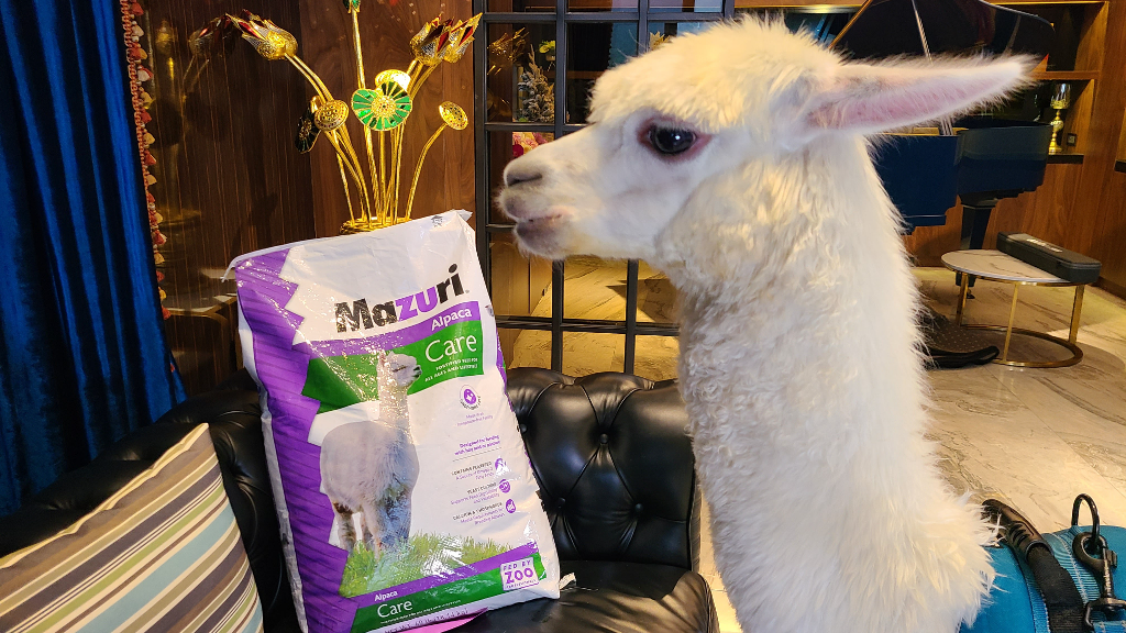王宥忻說,養羊駝前做足功課,但翻遍網路只查到交配、生氣會吐很臭的口水等資訊,「羊駝擁有三歲小朋友的智力,我們也是一邊養一邊學,麥可剛來家裡的時候,我們很緊張,幫牠梳毛、剃毛時,我常對牠講話,也常幫牠洗澡,久了就混熟了。」王宥忻驕傲地表示,麥可長相帥氣又親人,除了個性溫和,呼喚牠時耳朵還會翹起來回應,並發出「哼哼」的撒嬌聲,也會常靠過來討親親,非常可愛。至於網路上說草泥馬生氣會吐出臭口水的次數其實並不多,「通常是因為不讓麥可亂吃桌上的食物,硬把牠拉走,牠才會發揮吐臭口水的威力。」