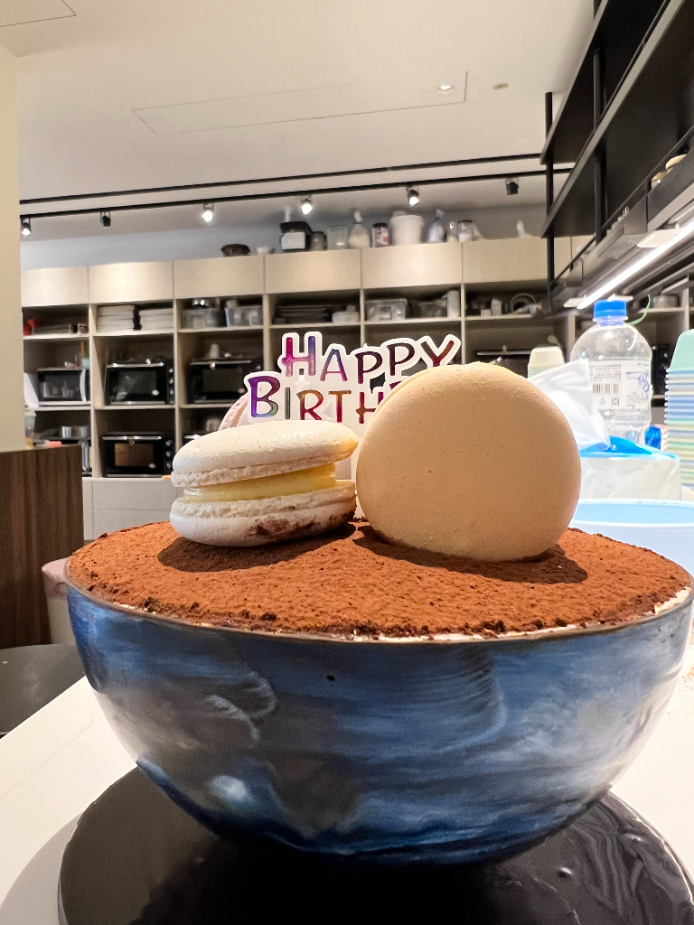 「例如餅乾、可麗露、千層派、星球蛋糕,就是把一個圓球打破,裡面還有提拉米蘇,真的很厲害!像今年方馨生日,我就沒有去外面訂蛋糕,直接就打給陳謙文說,你可以幫方小馨做一個蛋糕嗎?然後他就花了一天的時間把它做出來。」令簡沛恩驚訝不已,立刻力邀他一起合作。