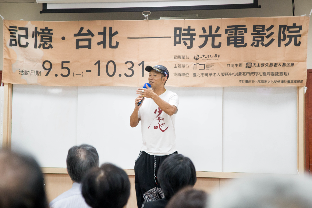 九月八日至十月三十一日每週一下午在臺北市萬華老人服務中心舉行「記憶‧台北─時光電影院」系列活動,邀請大家透過電影欣賞、映後座談、地景導覽、工作坊,回望電影中的臺北,創造不同世代對於城市、影像記憶的對話。本活動以「記憶」為主軸,期待透過回望電影保存的影像記憶,喚醒觀眾的生命記憶,進而形塑臺北城市的全民記憶。電影欣賞之外,將邀請講師分享電影拍攝背景、文史工作者分享城市變遷與地景差異,以及安排電影地景導覽,帶民眾走進影片中的拍攝地,實際比對今昔差異。更有電影記憶工作坊,加強電影帶給民眾創意學習、豐富藝術生活的連結。