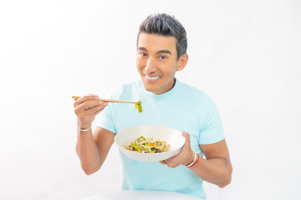 他這次推出即食產品,主打杏鮑菇、龍虎石斑魚,以及膠原蛋白三大產品,他解釋龍虎石斑的蛋白質營養極高,和膠原蛋白都是人體不可缺少的營養,而杏鮑菇的膳食纖維非常多,沒脂肪又有飽足感,是非常好的食物。他特地設計將杏鮑菇切成條狀入菜,做出麵條的口感,為求好心切,在量產階段,他還專程到廚房幫忙打下手,協助將杏鮑菇手工切條、切絲,他苦笑:「本以為自己有在下廚,備料切菜輕而易舉,沒想到實在太累了,還是專心跳舞就好。」