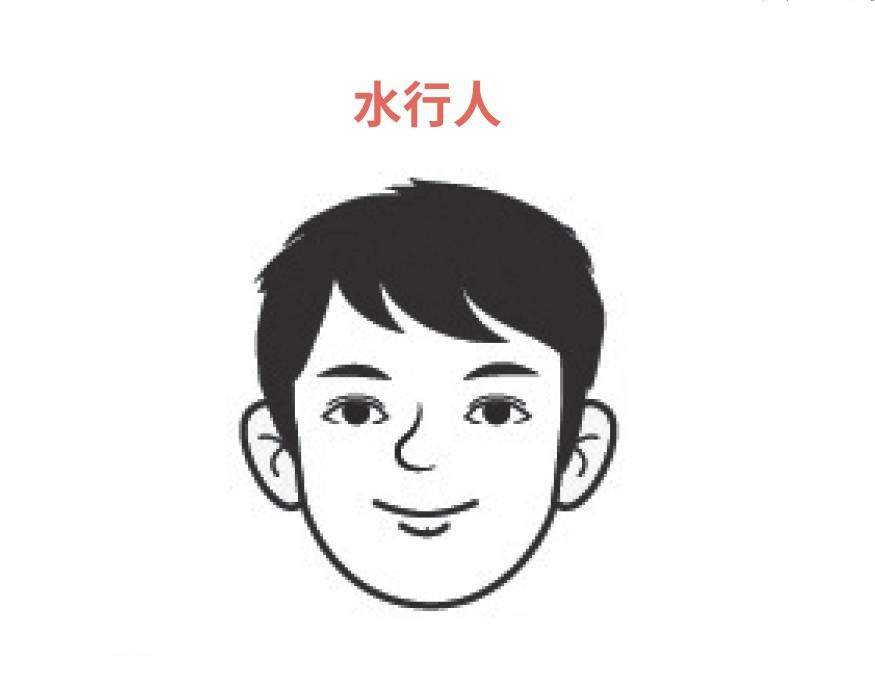很多人都會問我,「老師,我的臉到底算不算圓?」有時候大家很難去理解,因此水行人簡單來說就是靈活的胖子,他們特色就是「沒有脖子」,如果你的脖子比較長,一般來說,你就不算是典型的水行人,如果你今天沒有脖子,臉又很圓,整個人圓圓的,就是很典型的水行人。再來他們發財的速度會比一般人更快,發展迅猛,所以水行人如果發財都是在一瞬間,有如黃河氾濫,一發不可收拾。