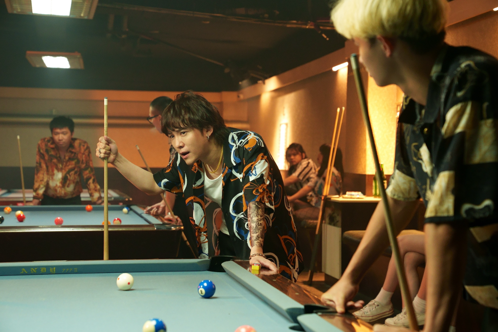 ▲ MV中化身台客浪子的金志遙無論打撞球、抽菸的神情就像極了《當男人戀愛時》中的邱澤。