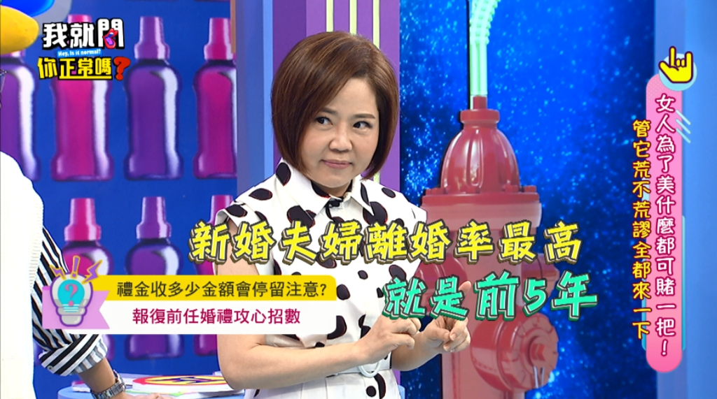 ▲ 于美人透露新婚夫妻結婚前五年裡的離婚率最高。 (圖:東森超視)