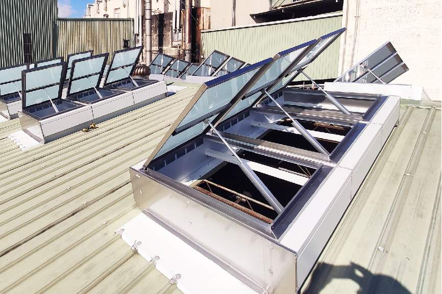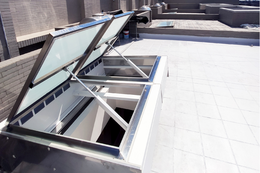 在消防意識逐漸高漲的當今社會,大眾對於天窗的功能性也從單純作為透光媒介,轉變為期望能兼具防災功能。因應如此社會趨勢,佛司特也投入研發並設計出此款《採光通風排煙窗》,將採光、通風、排煙功能三合一。