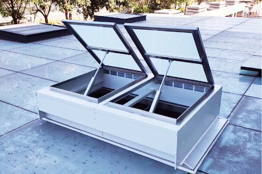 排煙裝置多設置在屋頂,因此窗體耗損也成為一大重點課題。而《採光通風排煙窗》透過常態性通風設計使窗面不易結露,進而降低人員清潔的成本與潛在職安危險,藉由減少後續維護保養的麻煩,延長產品壽命時間。