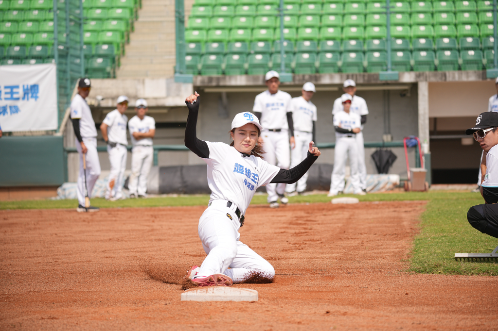 ▲ 「體壇周子瑜」姜巧文滑壘。(圖:巨宸、民視)