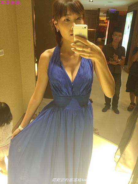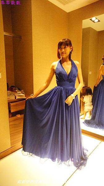 ▼第三套:小姐選的寶藍低胸,個人沒很愛寶藍(我皮膚黑,更容易顯黑),雖然小姐說燈光打下去都是白的XD