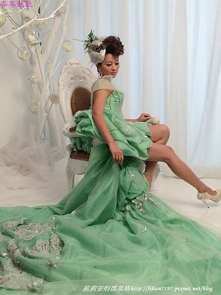 ▼朋友的百變禮服挑綠色這套,也是好華麗呀