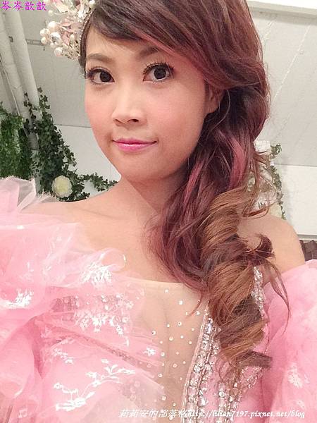 ▼頭髮不夠長,還幫我接髮(粉色是我自己的,下面黃色是接的)