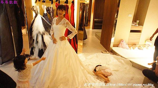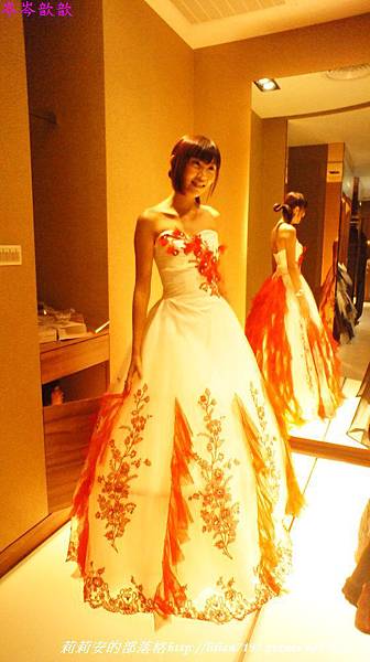 ▲以上這件晚禮服呢~只能挑一件~因為扣達一人三件(白紗*1、很厲害的主題禮服*1),所以晚禮服只能再一件,一開始都忘了,還試穿了一大堆= =,大家猜猜我最後挑了哪件吧~等會兒揭曉