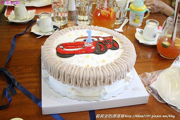 ▼接著又唱生日快樂歌吃蛋糕~是法拉利耶!(應該是爸爸的夢想吧)
