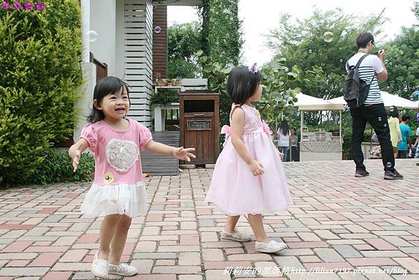 ▼逛到一個廣場有店員在吹泡泡~兩隻玩追逐泡泡的遊戲就耗很久時間了