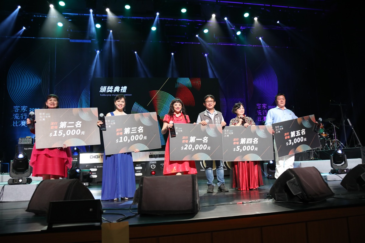 客家局表示,「流行歡唱組」比賽率先於10月1日登場,參賽者年齡從7歲到83歲,刷新過往參賽者的年齡上下限,更有熱情的家長陪同國小生北上參賽,顯見歌唱不分年齡廣受歡迎。歷經一番激烈競爭,依序由江秀珍、張香菊、陳金秀、張珮玲、葉秀秋拿下前五名;緊接著昨(2)日登場的是「流行新秀組」,不少團隊原先不諳客語,但在參加8月份開辦的培育工作坊後,激發對客家音樂的興趣,特地找客語老師學習並報名參賽;更有海外參賽者一同角逐冠軍寶座,最終由「楊玉凡/阿公」、「李彥鋒、謝睿彬/佢自家个路」、「江晟榮/伙房」拿下前三名,比賽圓滿落幕。