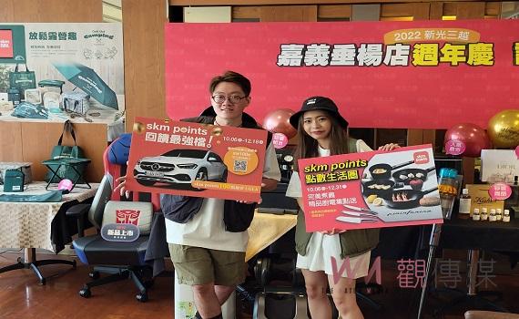 百貨週年慶開打,嘉義地區百貨仍舊是由耐斯百貨打頭陣,緊接著由百貨龍頭「新光三越」於10月6日至10月30日正式展開,新光三越嘉義垂楊店4日召開記者會除宣告週年慶即將開跑,同時發佈多項優惠辦法,其中消費點數首次加入週年慶運用,滿額送點外還有扣點兌換活動,讓會員的點數做出最優惠、最靈活的購物回饋。