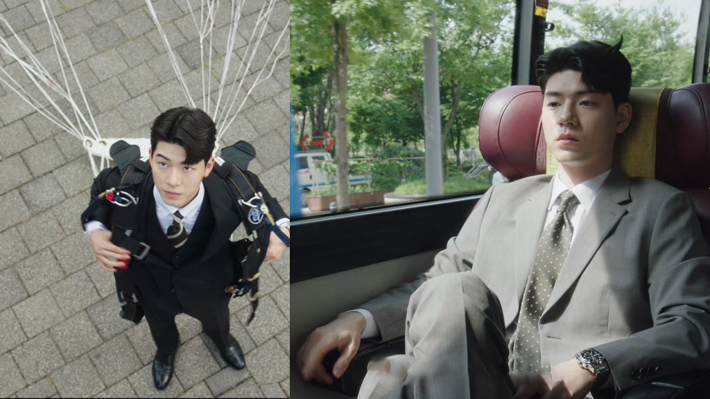 ▲ 富二代白馬帥(裴賢聖 飾)為了體驗平民生活,並擺脫父母掌控特意到敵對公司「高斯電子」當小職員,出場時乘坐降落傘,吃飯時拿出金湯匙,這不就是一般大眾對有錢人的「偏見」嗎?。(圖:龍華電視)