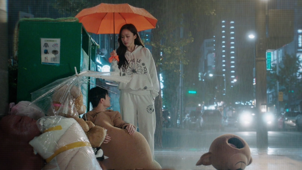 飾)帶著男朋友一起出現在約定場所,讓他慌張地逃跑,失魂落魄淋著雨倒在垃圾桶旁,看著被遺棄且同病相憐的熊娃娃,流下了眼淚,平常和李相植鬥嘴吵鬧不停的歡喜冤家車娜萊(高聖熙 飾)見狀不但沒落井下石,反而幫忙撐傘,有網友說「相植淋雨真的像個小可憐,娜萊貼心撐傘,男女主劇本拿反了吧!」