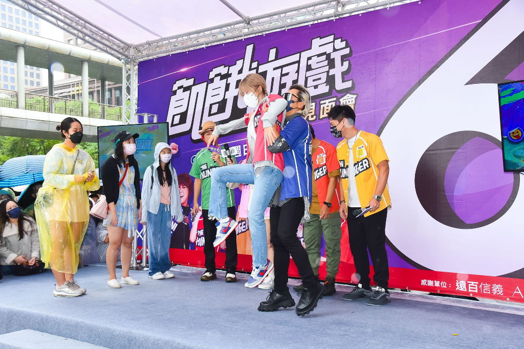中視《飢餓遊戲》開播六週年,今(10/15)在遠百信義A13舉辦粉絲見面會,主持群孫協志、王仁甫、許孟哲、蔡黃汝、峮峮合體現身,雖然天公不作美下雨不停歇,但《飢餓遊戲》五主的高人氣仍吸引了大批媒體與近400位粉絲把活動現場擠爆,更有粉絲當天一早就撐傘排隊,只為能近距離一睹偶像風采。活動找來藝人大根主持,和飢餓五主一搭一唱,逗樂台下粉絲,而五位主持人當天和現場粉絲一起互動玩「幕後黑手比手畫腳」,為詮釋「放天燈」題目,王仁甫直接把蔡黃汝抬了起來,讓粉絲看了爆笑聲連連。