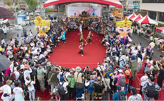 ▲全國家將祭活動在嘉義市立體育場外會合展演。