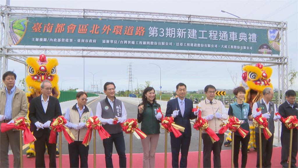台南都會區北外環道路第3期工程今天正式通車,全長約4.826公里,將可以紓緩南科銜接新港社大道至台江大道間的車潮,提升南科聯外交通品質,台南市長黃偉哲今天出席通車典禮,感謝中央補助,也預告北外環道路全線在2027年完工後,全市1小時生活圈的目標,將逐步實現。