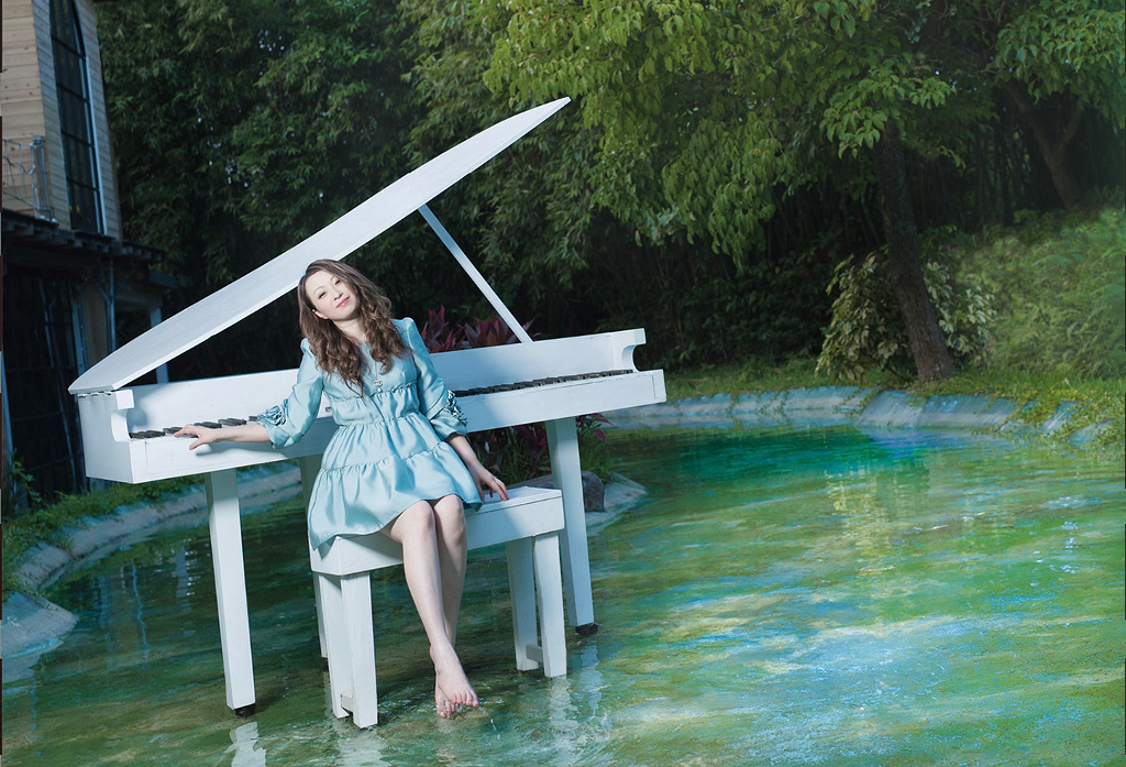 ▲ 林志玲御用攝影掌鏡!大師安排她走入池塘「水中鋼琴」,手法相當唯美。(圖:源瑗園)