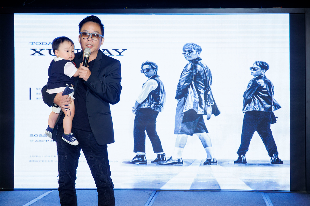 立志做「台灣PSY」的 Xunday,成團三年有成,推出最新專輯《Today is Xunday》,今(25日)舉辦生平第一場記者會,在全台媒體前風光唱跳《爆米乓》,團長秦天恩師凃惠源,偕太座呂婕菲(Shiny)和一歲兩個月愛子「小凃丁」站台力挺!說到彼此的淵源,凃老師說:「Xunday老闆郭柏均(丹尼斯)的父親是我華岡藝校的老師,他又是我華藝和台藝大的學弟,是很親的朋友。」
