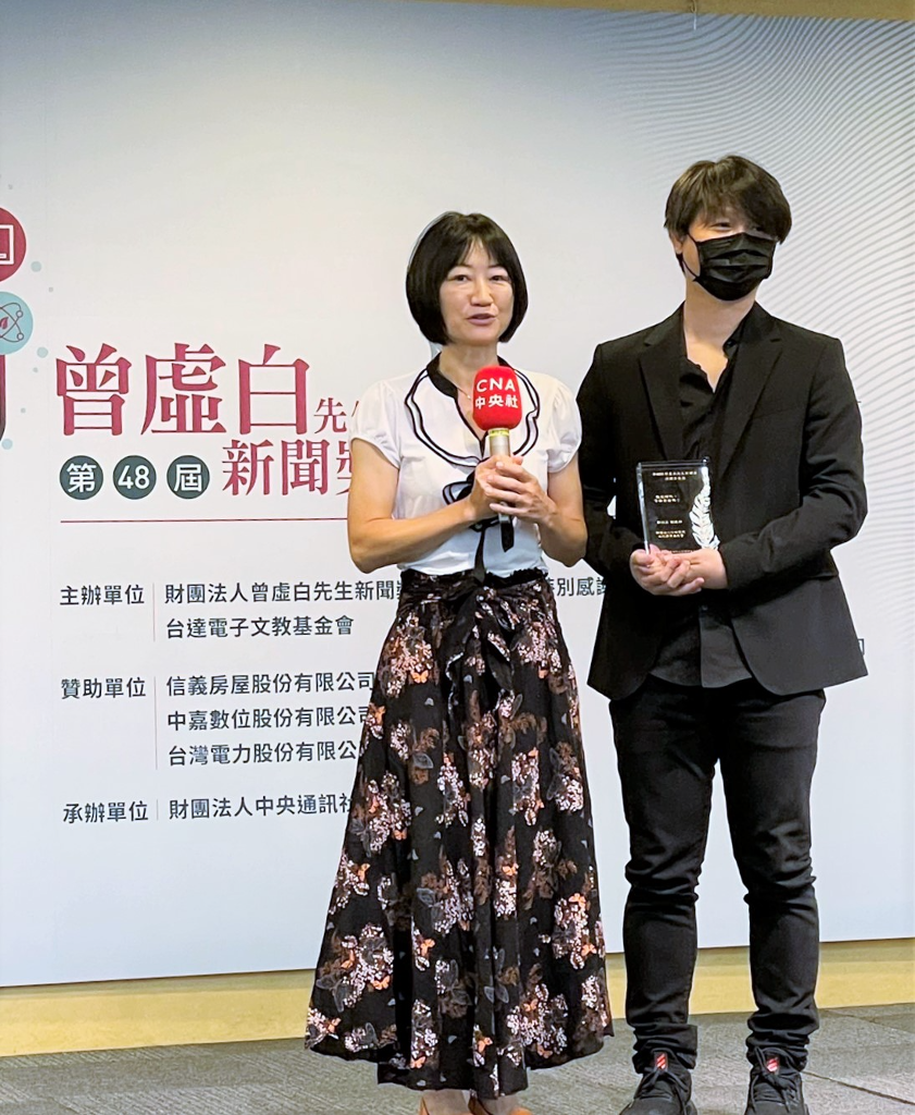 ▲ 公視深度報導節目《獨立特派員》團隊鄭淑文、劉建邦(左、右)獲曾虛白先生新聞獎。(圖:公視)